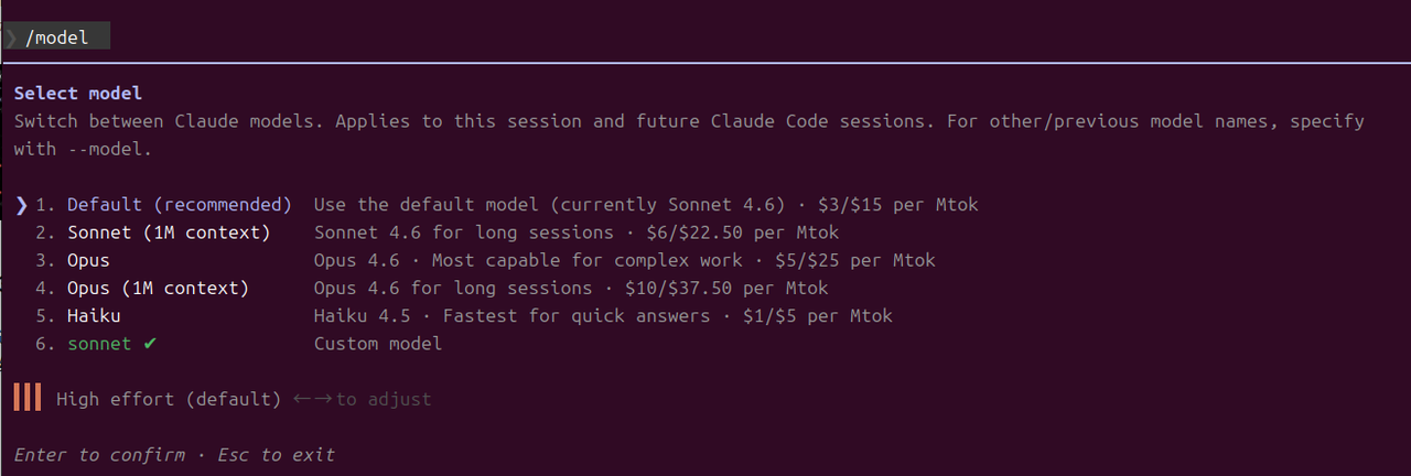 # 方式 1:在 /model 菜单中用 ← → 箭头键调节滑块